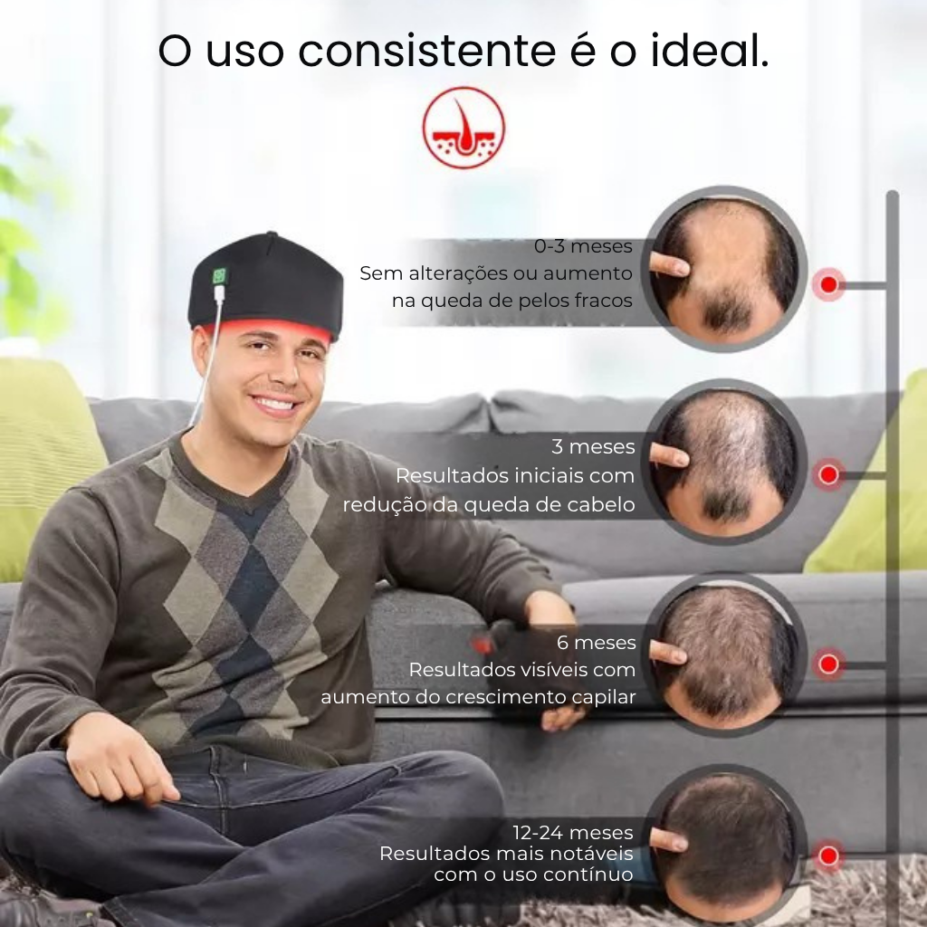 Com 3 modos de pulsação e LEDs de duplo comprimento de onda (660nm + 830nm), ele estimula o crescimento capilar, melhora a circulação e reduz o estresse físico e mental — em apenas 20 minutos por sessão.